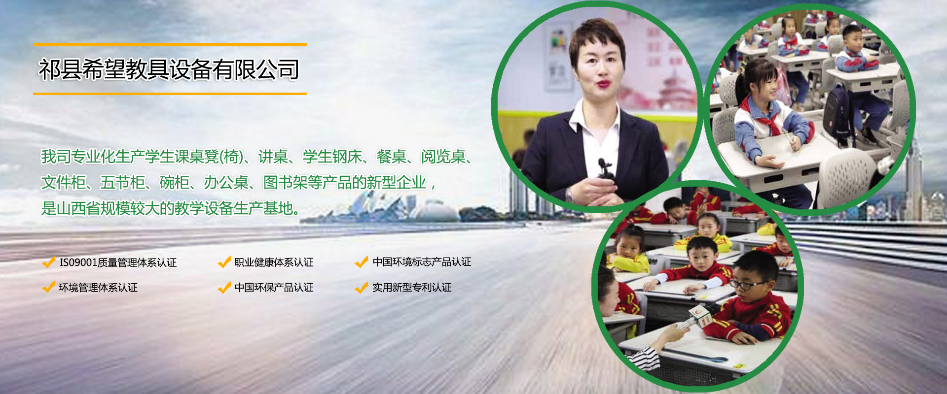希望教具設備有限責任公司成立于2006年10月12日(前身祁縣希望教具廠,始建于2002年1月),是專業化生產學生課桌凳(椅)、講桌、學生鋼床、餐桌、閱覽桌、文件柜、五節柜、碗柜、辦公桌、圖書架等產品的新型企業